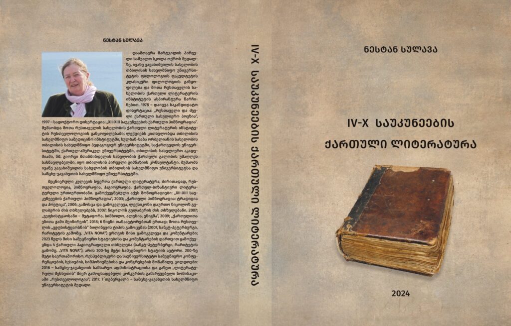 თსუ-ს პოფესორის ნესტან სულავას მონოგრაფია „IV-X საუკუნეების ქართული ლიტერატურა“ მნიშვნელოვანია მრავალი თვალსაზრისით. 672 გვერდიან ფუნდამენტურ ნაშრომში ასახულია IV-X საუკუნეების ქართული ლიტერატურის განვითარების კანონზომიერებები, ლიტერატურული ნაწარმოების შექმნის თანმდევი პროცესები, ასევე, ისტორიულ-ფილოლოგიური მახასიათებლების ერთიანობა, რაშიც შედის მწერლის მოღვაწეობისა და თხზულების შექმნის ეპოქის პოლიტიკურ-სოციალური და კულტურული მახასიათებლები, ავტორის მსოფლმხედველობრივი მრწამსი, ინდივიდუალური ლიტერატურულ-ესთეტიკური ხედვა, კოდიკოლოგიურ-ტექსტოლოგიური და ლიტერატურულ-ესთეტიკური პროცესების დიაქრონიულ-სინქრონიულ ასპექტებში თემატურ-ჟანრობრივი, მსოფლმხედველობრივი თვალსაზრისით აღწერა, კლასიფიკაცია, განხილვა მსოფლიო ლიტერატურის კონტექსტში. წიგნში, ძირითადად, განხილულია ქართული ჰაგიოგრაფია, ჰიმნოგრაფია, ჰომილეტიკა.
