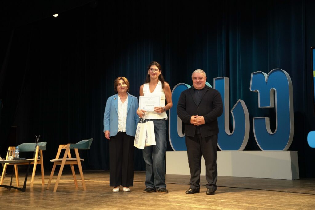 შეხვედრაზე თსუ-ს რექტორმა და ფაკულტეტის დეკანმა დააჯილდოვეს 2025 წლის ერთიანი ეროვნული გამოცდების შედეგად თსუ-ს ფსიქოლოგიისა და განათლების მეცნიერებათა ფაკულტეტზე ჩარიცხული ყველაზე მაღალქულიანი პირველსემესტრელი სტუდენტი ქეთევან ტვილდიანი.